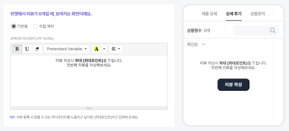 [접속 경로: 디자인 설정 > 리뷰 작성 유도 > 리뷰가 없을 때]