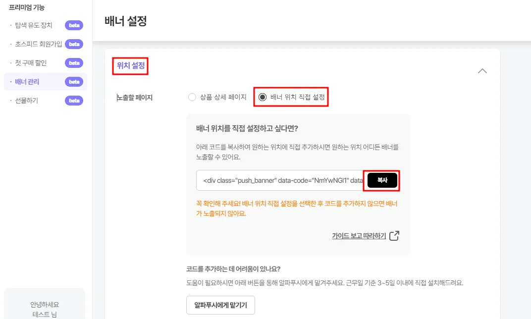 μ€μ ν μ½λλ₯Ό 볡μ¬νμ¬ μ§μ μ€μΉλ₯Ό ν΄μ£ΌμΈμ!