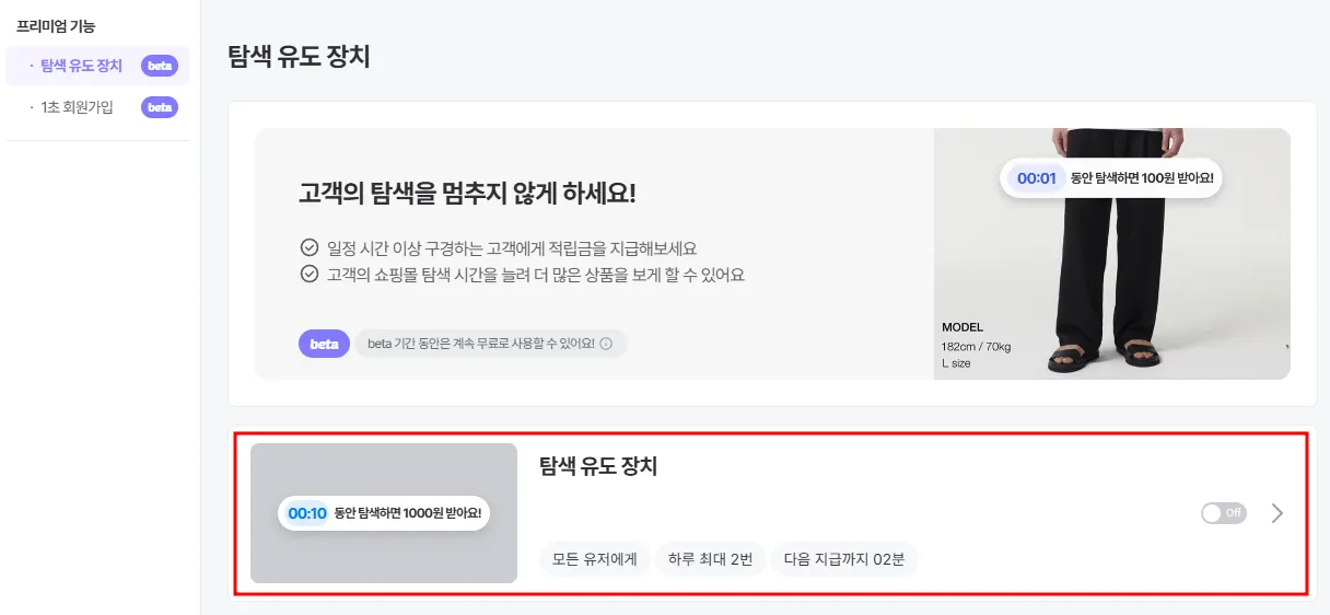 노출 유저: 탐색 유도 장치 기능으로 포인트를 지급 받을 고객 종류를 설정 할 수 있습니다