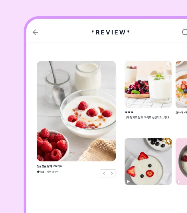상품별 리뷰 비교 위젯은 상품 정보 우측에 포토 리뷰 위젯 형식으로 리뷰가 보여지는 위젯이에요