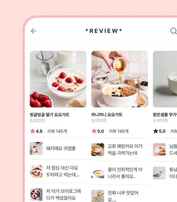 즉 가장 왼쪽에는 상품 이미지를 포함한 상품 정보가 보인 다음, 오른쪽에 리뷰들이 보여지게 됩니다