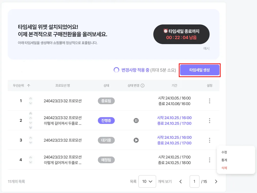 ํ์์ธ์ผ์ ์ ์ฉํ ์๊ฐ๊ณผ ๊ธฐ๊ฐ์ ์ค์ ํด์ฃผ์ธ์!