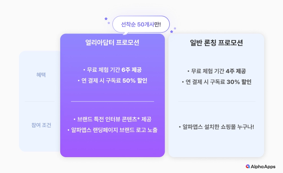 아임웹 혜택! 얼리아답터 & 일반 론칭 프로모션 중 하나 선택해 보세요!