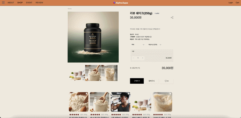 알파리뷰가 적용된 모습은 어떨까요? 데모 쇼핑몰에서 미리 확인해 보세요!