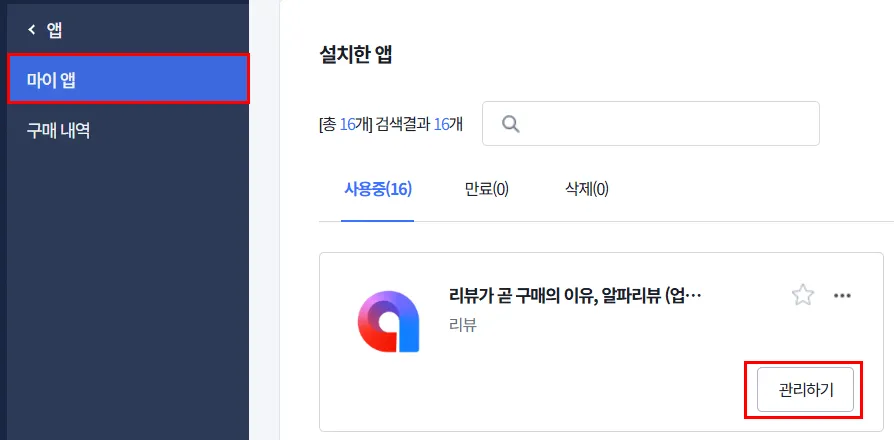[카페24 어드민 로그인 > 앱 > 마이 앱 > 알파 앱스 관리하기]를 통해 대시 보드에 접속 하실 수 있어요!