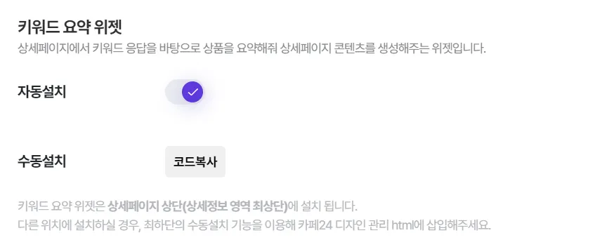 키워드 리뷰 위젯은 기능 설정 시 자동으로 설치 되므로 별도의 설치 작업은 필요하지 않습니다
