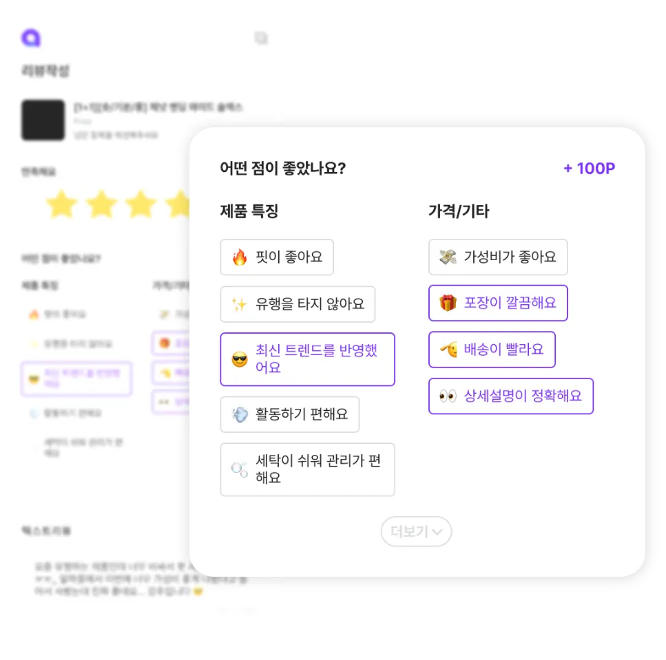 고객이 리뷰 작성 시 키워드를 선택하면 위젯에 자동으로 적용 되며