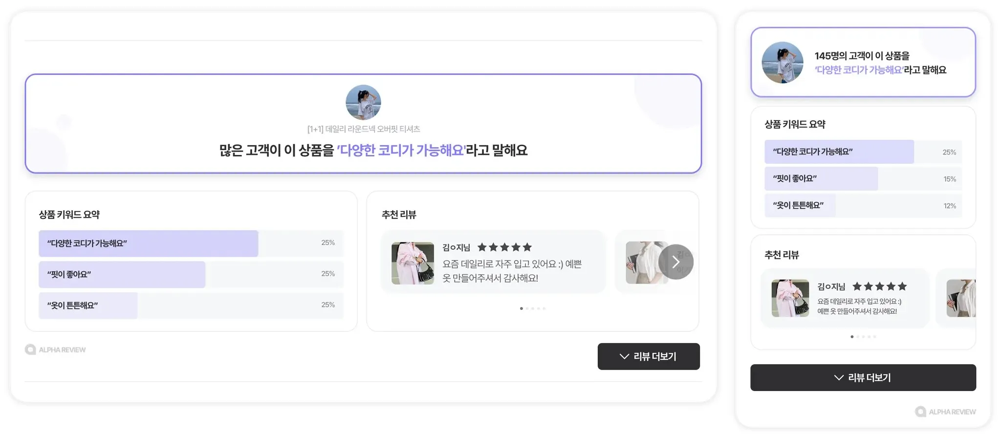 키워드 리뷰 위젯은 고객이 직접 선택한 키워드를 요약해서 보여주는 위젯이에요