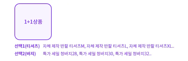 한 개의 상품에 두 개의 옵션을 둬서 두 가지 상품을 판매하는 경우 옵션세트로 묶는 것이 좋습니다.