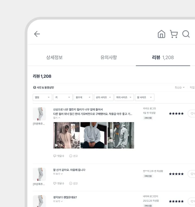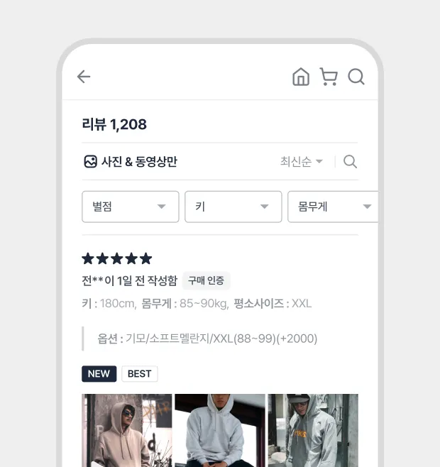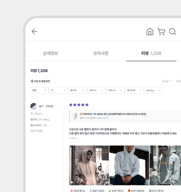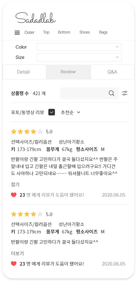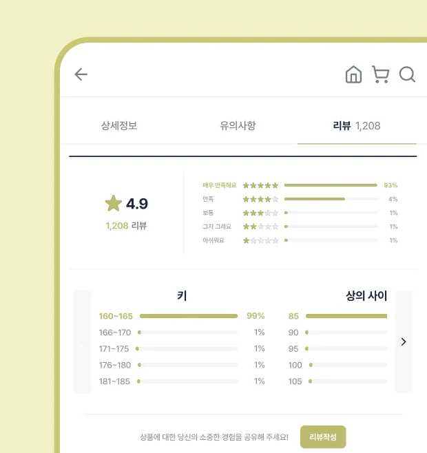 왼쪽의 예시처럼 키와 몸무게 등을 리뷰로 받아보고 싶으시다면?