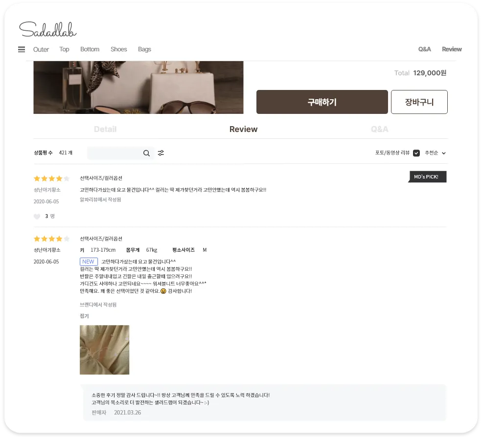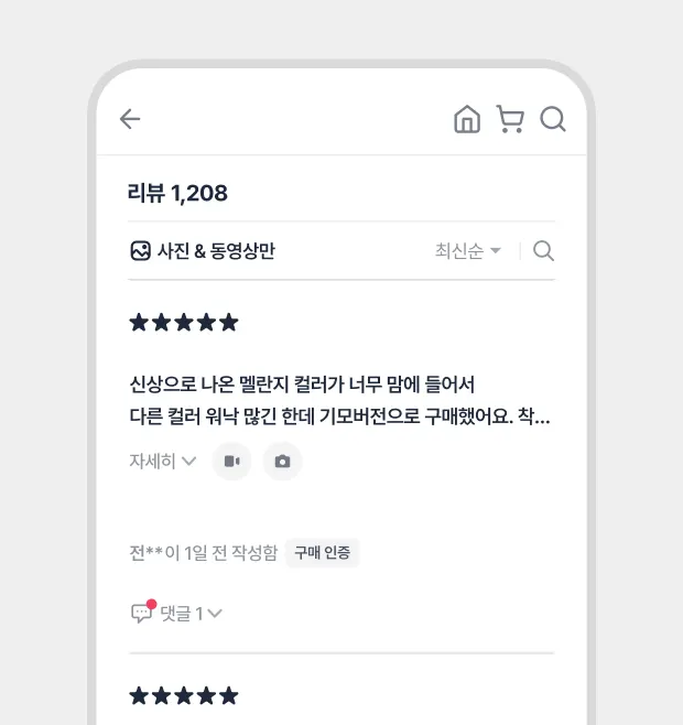리뷰 내용 전체가 보여지도록 펼쳐 둘 수도 있고, n 줄까지만 미리 보여지도록 접어두는 것도 가능해요!