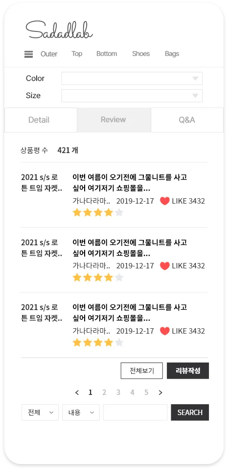 게시판 위젯의 기본값은 “최신순”으로 가장 최근에 작성 된 리뷰가 최상단에서 보여져요!