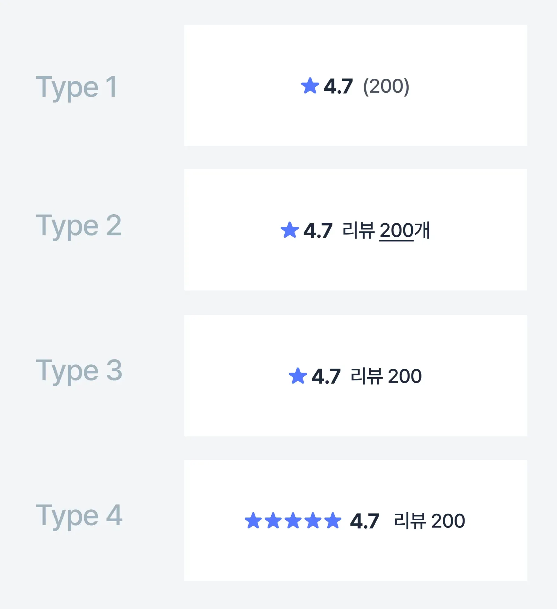 포토 리뷰를 강조하고 싶다면 포토 리뷰가 강조되는 스타일을, 텍스트 리뷰를 강조하고 싶다면 텍스트가 강조되는 스타일을 이용해보시면 됩니다