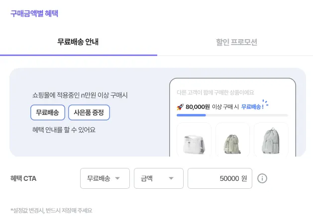 n원 이상 구매 시 무료 배송/할인 과 같이 상품을 추가 구매하도록 유도 해주는 기능입니다