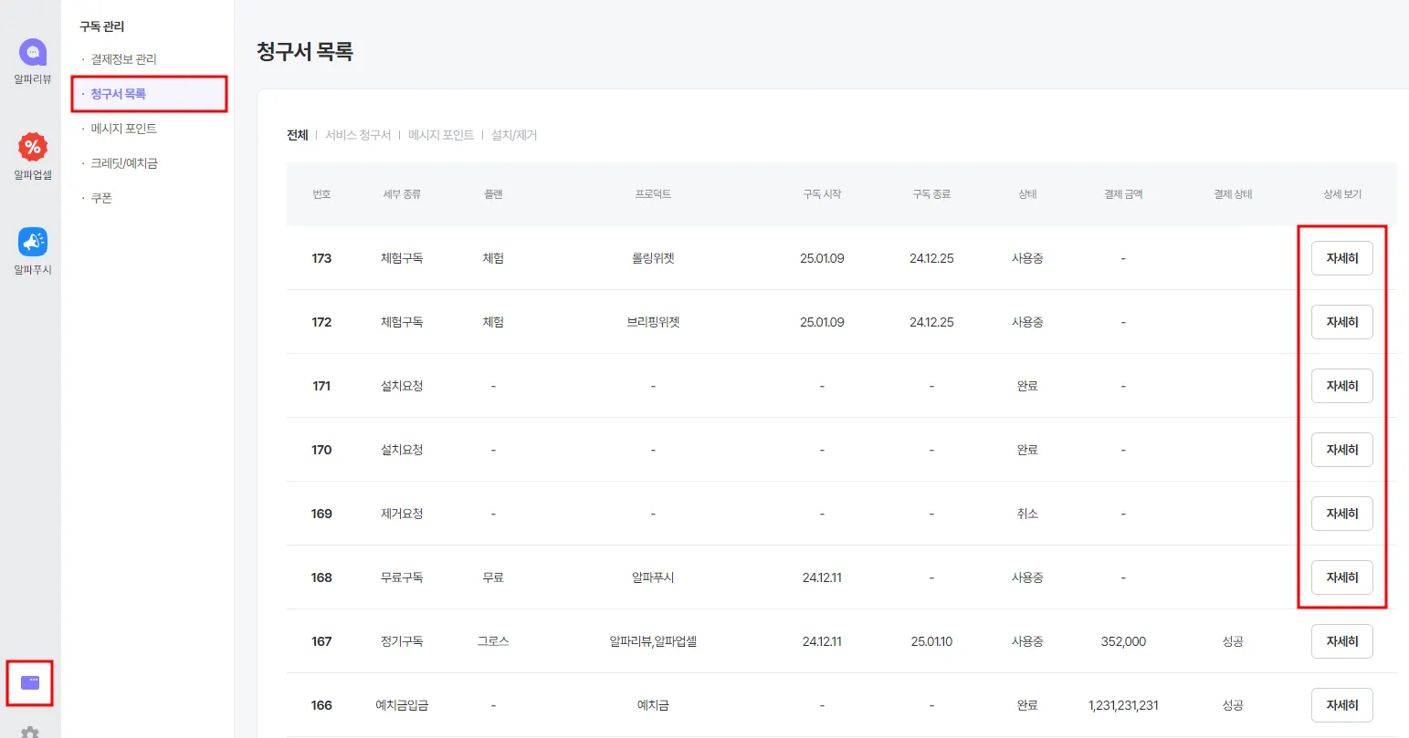 확인이 필요한 청구서의 자세히 버튼 클릭